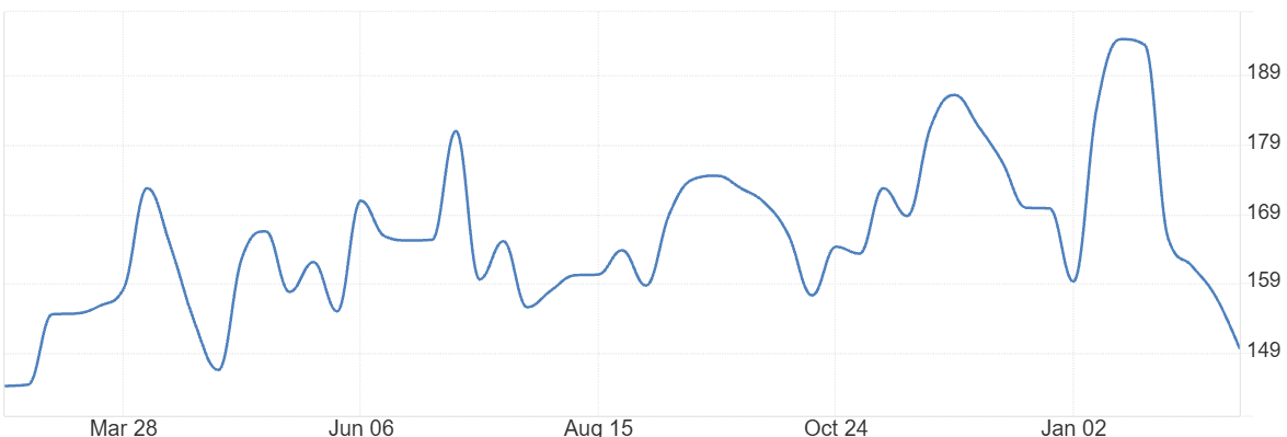 · Mortgage Applications, Purchase Index - Mortgage Bankers Association via Trading Economics - https://tradingeconomics.com/united-states/mba-purchase-index